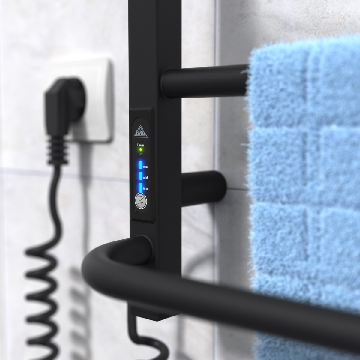 Особливості: керує нагрівом електрорушникосушарки мікропроцесорний термоконтроллер (кнопкове управління). Для початку роботи необхідно задати температуру рушникосушарки. Термодатчик контролює температуру поверхні рушникосушарки, що виключає можливість її перегріву. Серед переваг регулятора - зберігання обраного режиму роботи (при відключенні робота відновитися в запрограмованому користувачем режимі), наявність таймера відключення (3h) і колірної індикації роботи!